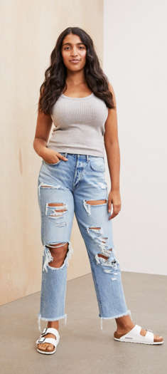 Petite Boyfriend Jeans Baggy Pants Style Tips - Embrace casual chic in a ripped & cropped.
